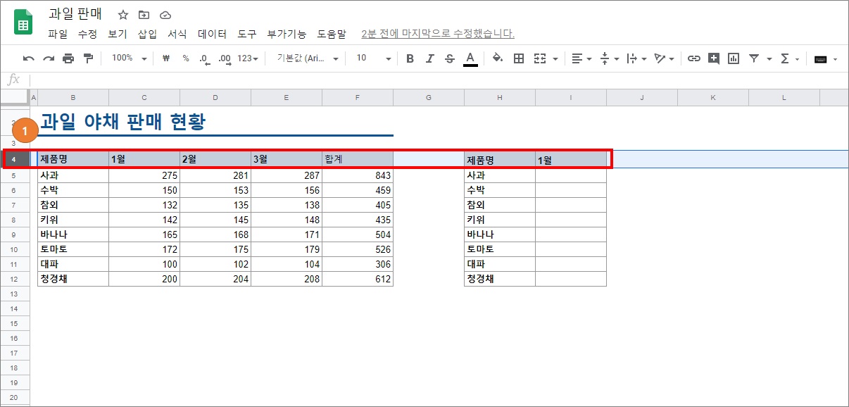 구글 스프레드시트에서 셀 서식을 가운데 맞춤을 해보겠습니다.