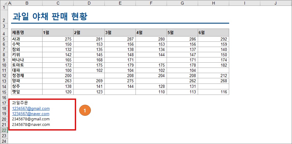 엑셀을 하면서 이메일을 적으면 자동으로 연결되게 설정되어있습니다.