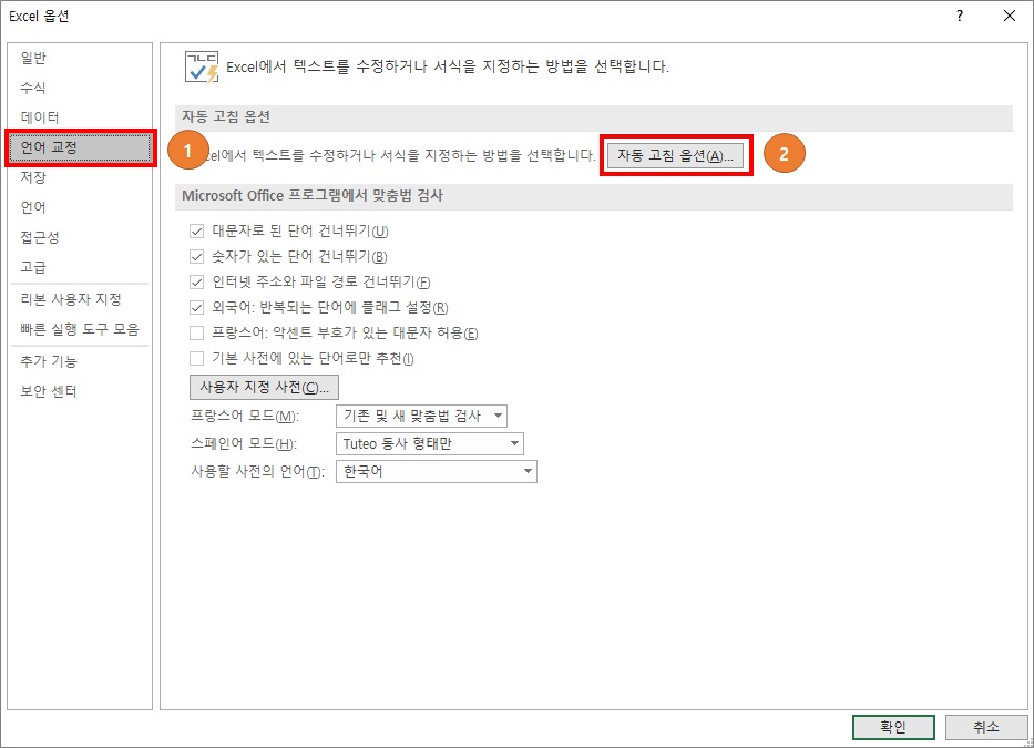 1번 : 언어 교정 클릭