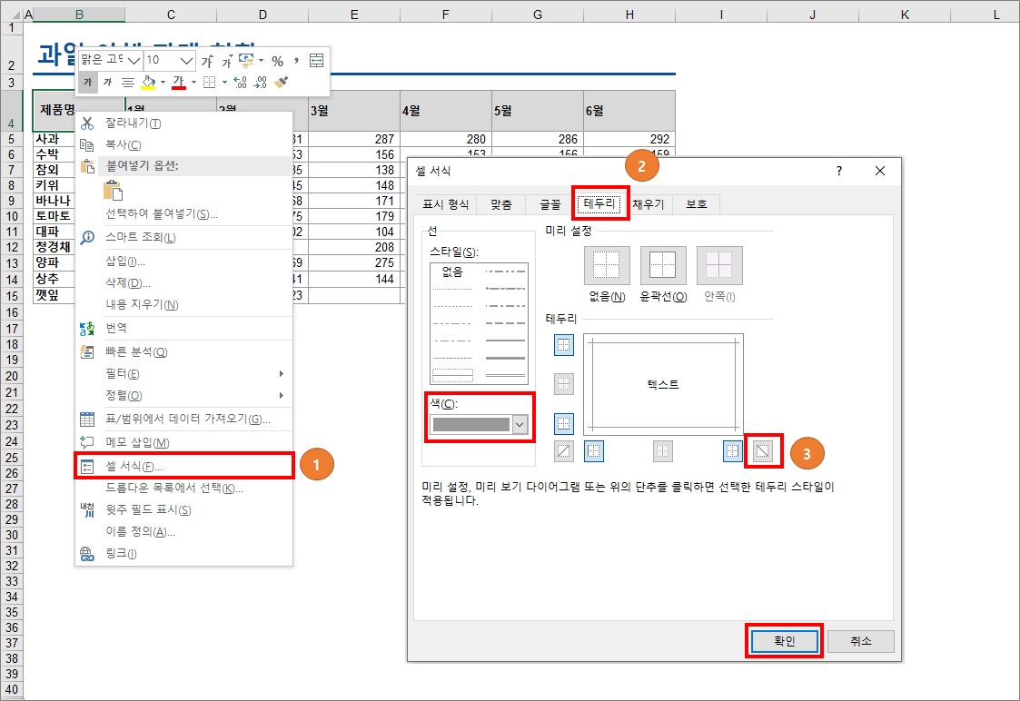 1. 셀 서식을 통해서 대각선으로 구별해보세요