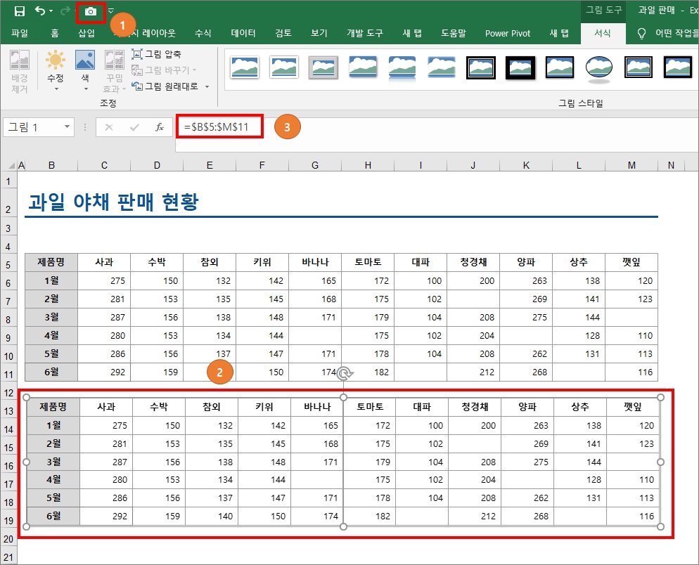 엑셀 카메라 실행도구는 "특정 셀 범위를 이미화 시켜서 활용하는 기능"입니다.