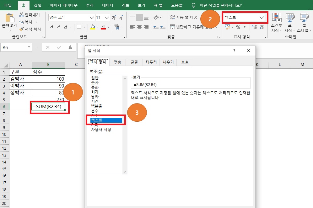 엑셀 수식이 안 되는 경우는 3가지입니다.