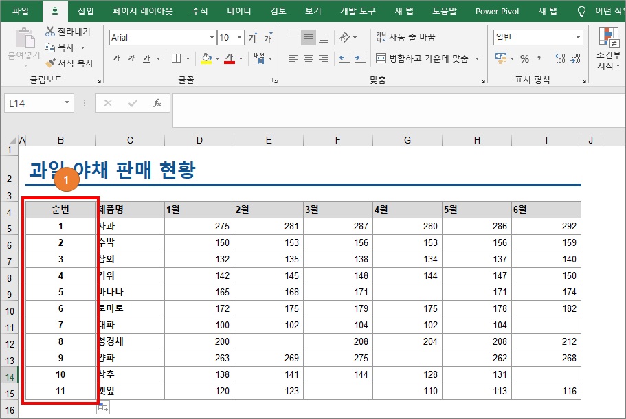 엑셀 데이터 표를 만들때 순번을 입력합니다.