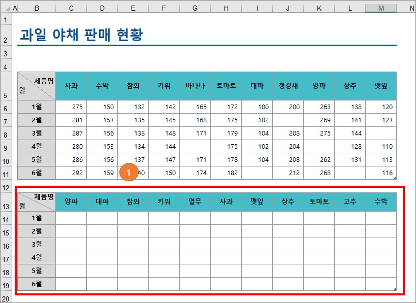 조건 : 원본데이터에서 1번에 비어져 있는 곳에 값을 채워 넣어 보세요