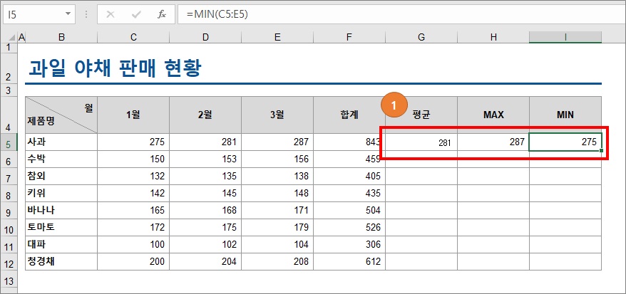 3. MIN 함수를 적용해보겠습니다