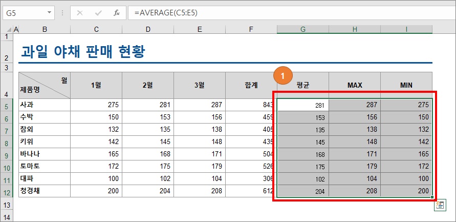 4. 3가지 작성한 함수를 드래그를 통해서 채우기를 합니다.