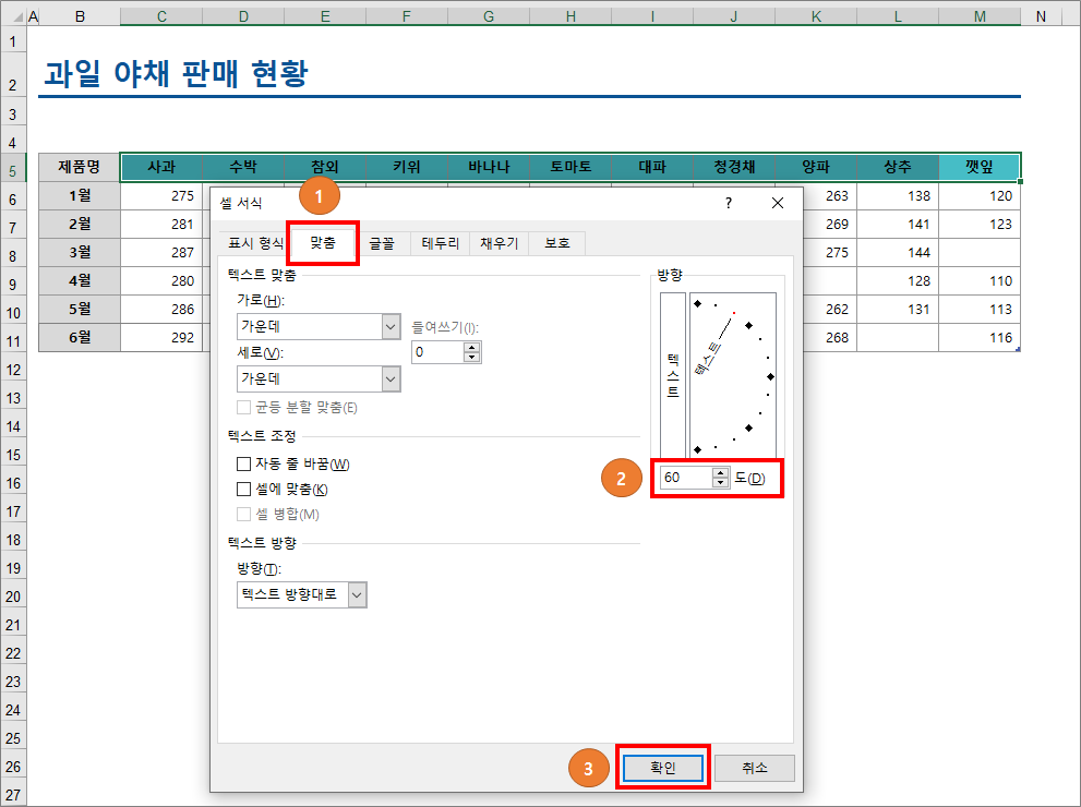 1번 세로 형태와 60도 각도 입력하 내용과 비교해보세요