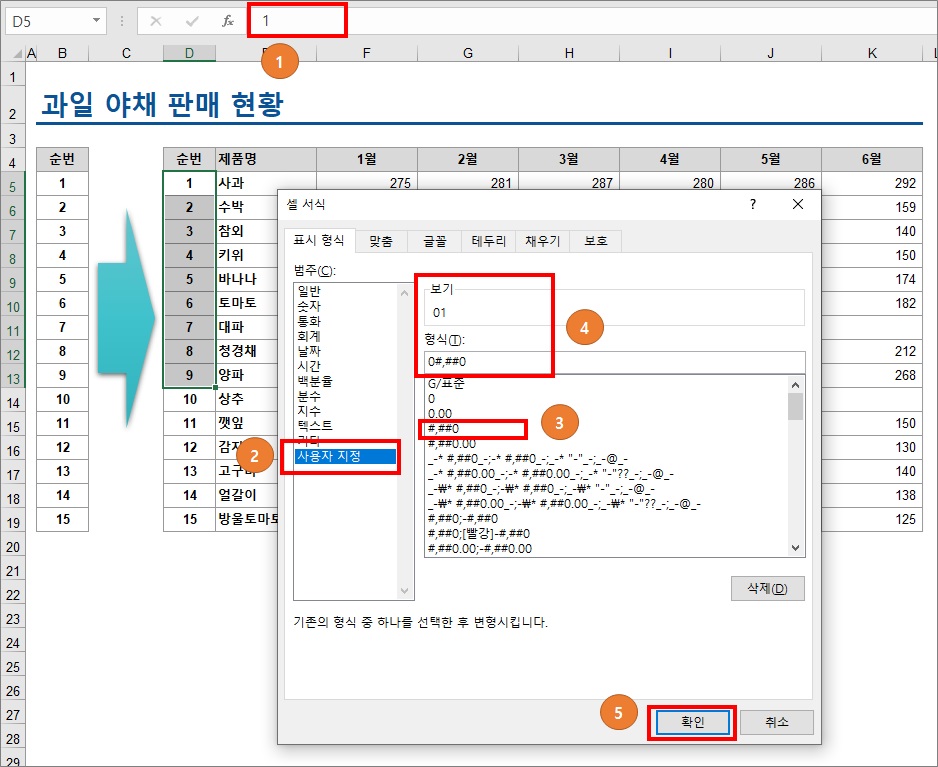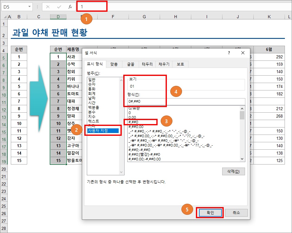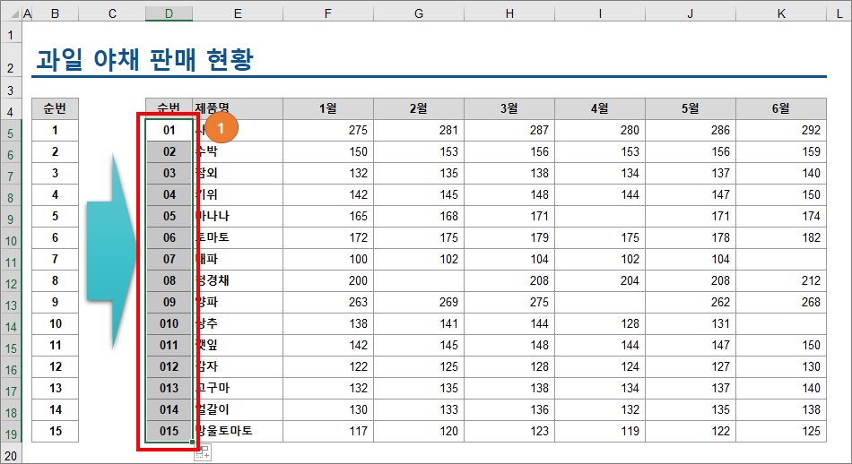사용자 지정을 통해서 모든 순번 앞에 0이 입력되었습니다.