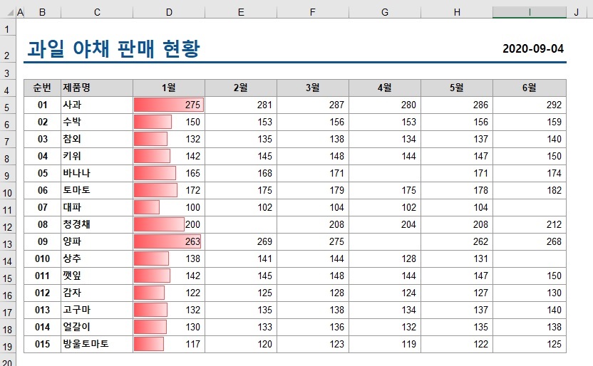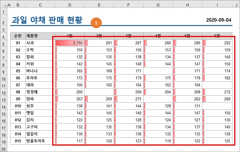 2. 1월~6월 전체를 하면 전체를 기준하여 데이터 막대가 표현되고