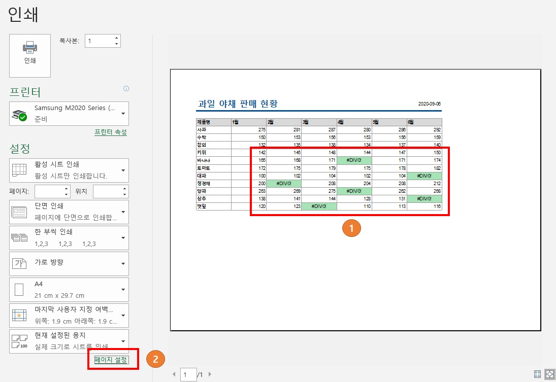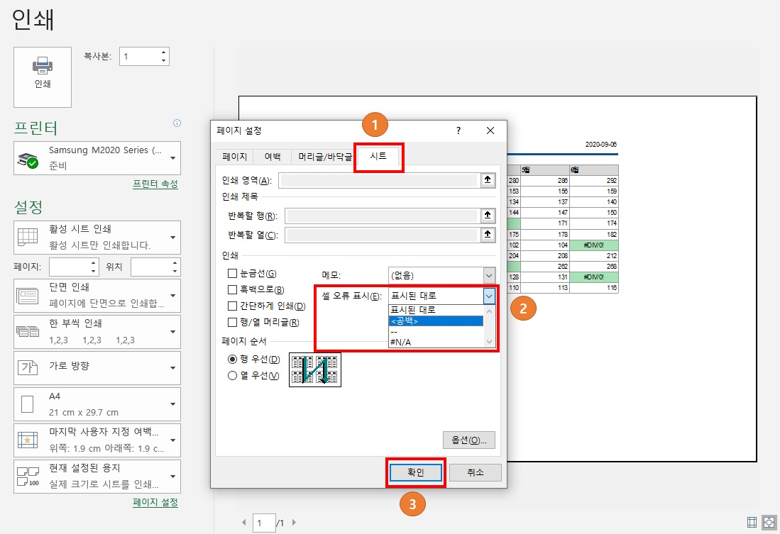 엑셀 오류 내용 안 나오게 인쇄하는 방법은?