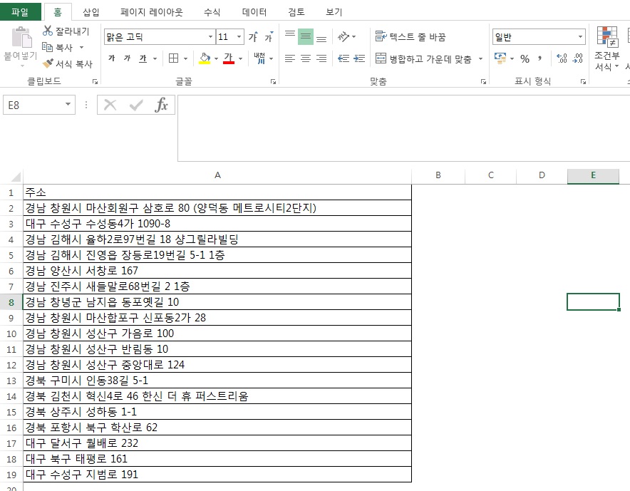 1. 아래처럼 주소에 있는 빈칸을 제거해보겠습니다.
