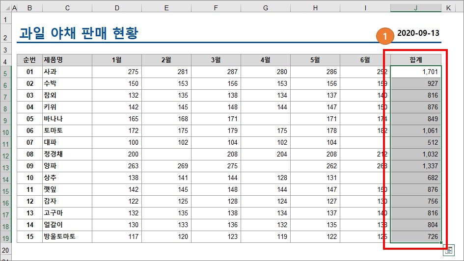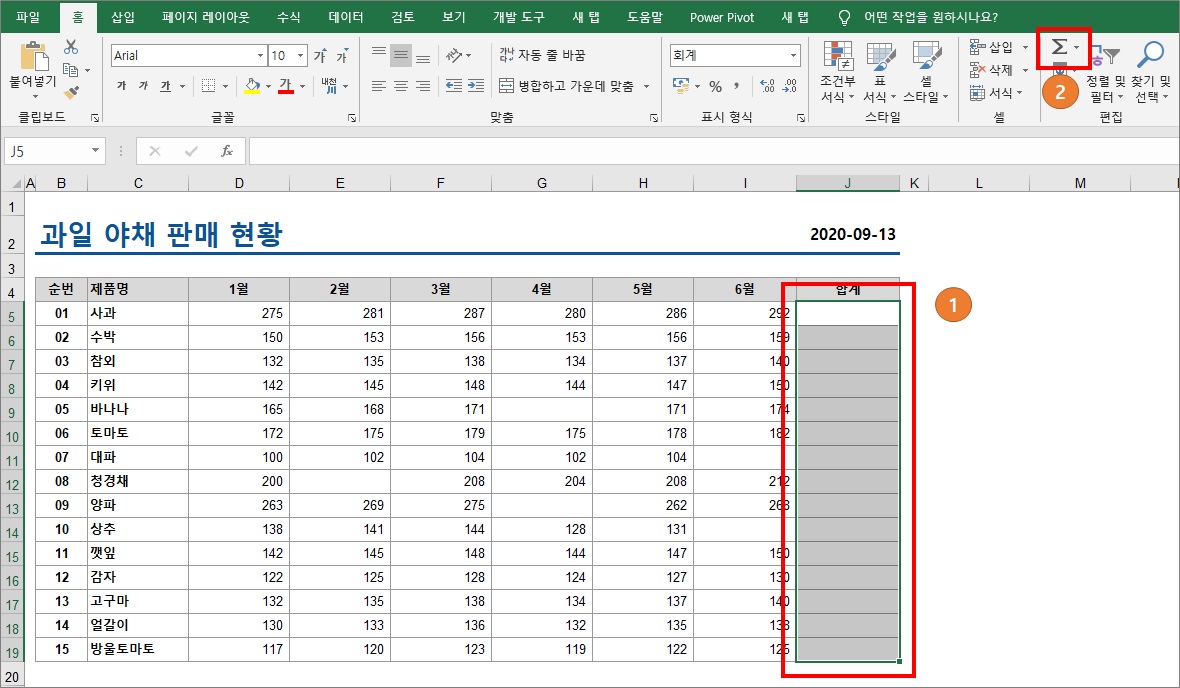 1번 : 합계를 구할 셀의 범위를 설정합니다.