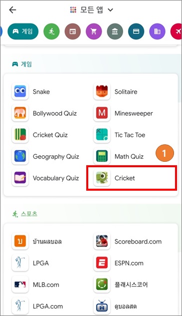 3. 구글 고 모든 앱에서 크로켓을 클릭합니다.