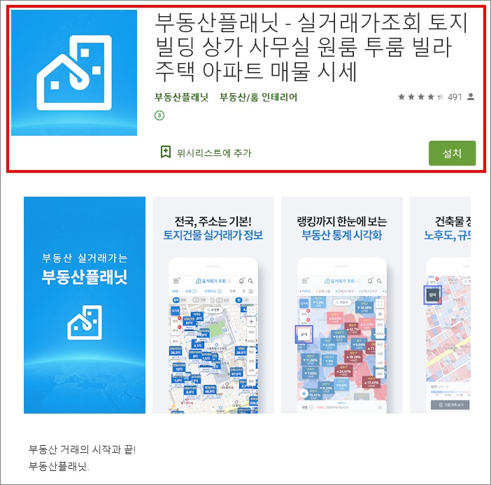 부동산 플래닛 조회를 하고 앱을 설치합니다.