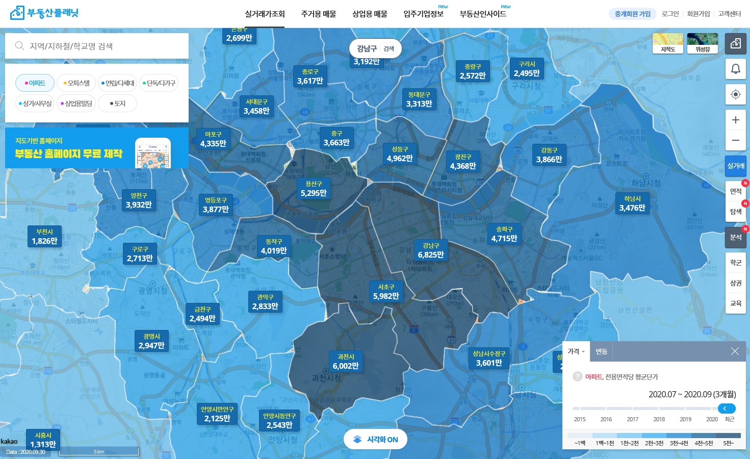 1. 부동산 가격을 구단위로 볼 수 있습니다.