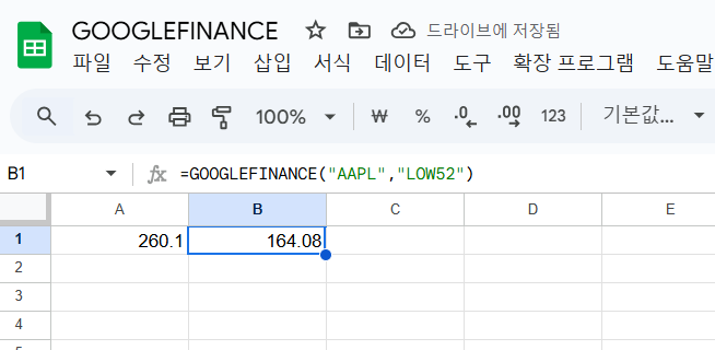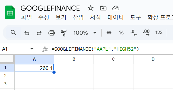 GOOGLEFINANCE를 활용한 52주 최고가, 최저가, YTD 데이터 분석하기