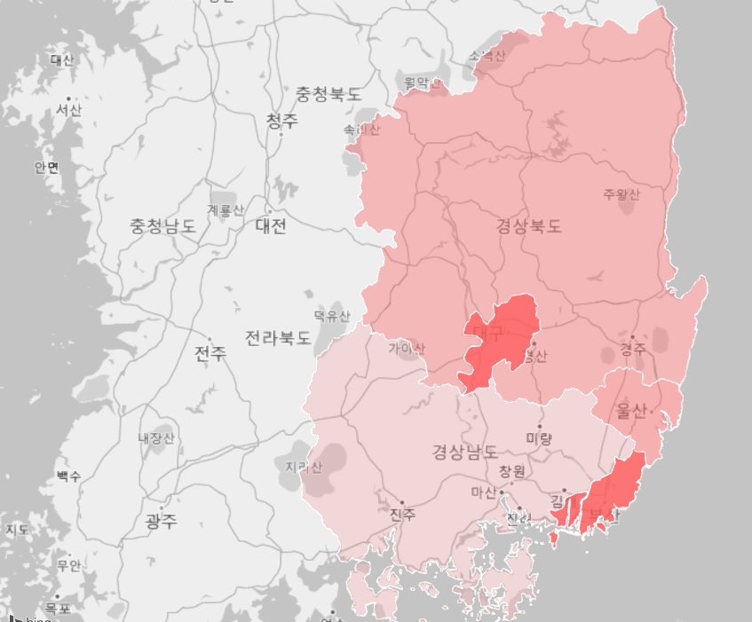 시도별 열 지도로 중요 시도를 표시할 수 있습니다.