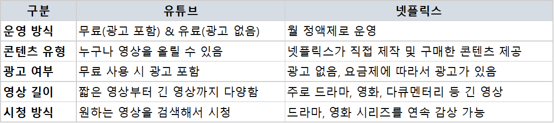 1. 유튜브와 넷플릭스, 기본적인 차이점