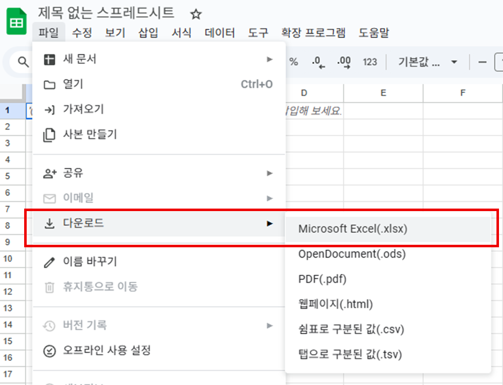 3. 구글 스프레드시트 작업 후 엑셀로 다시 저장하기