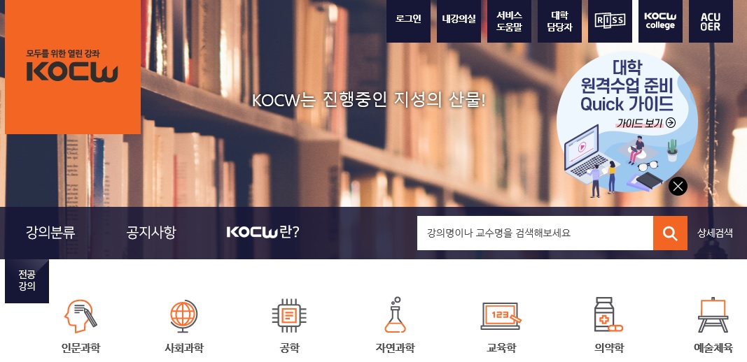 KOCW의 가장 큰 장점은 입맛에 맞는 강좌입니다.