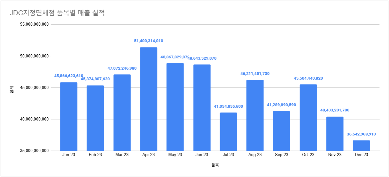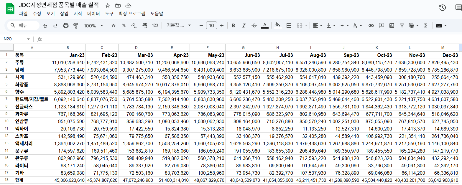 참고용으로 아래 데이터는 "JDC지정면세점 품목별 매출 실적" 입니다