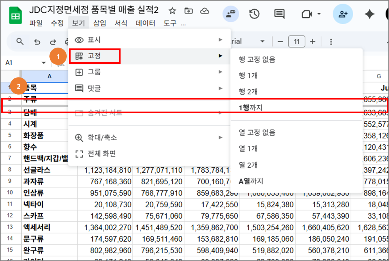 구글 스프레드시트 상단 메뉴 "보기" 완벽 정리