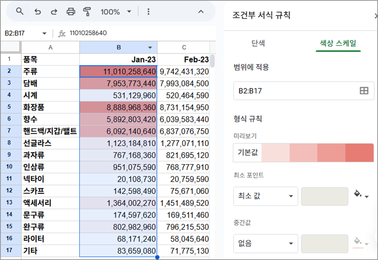 구글 스프레드시트 상단 메뉴 "서식" 완벽 정리