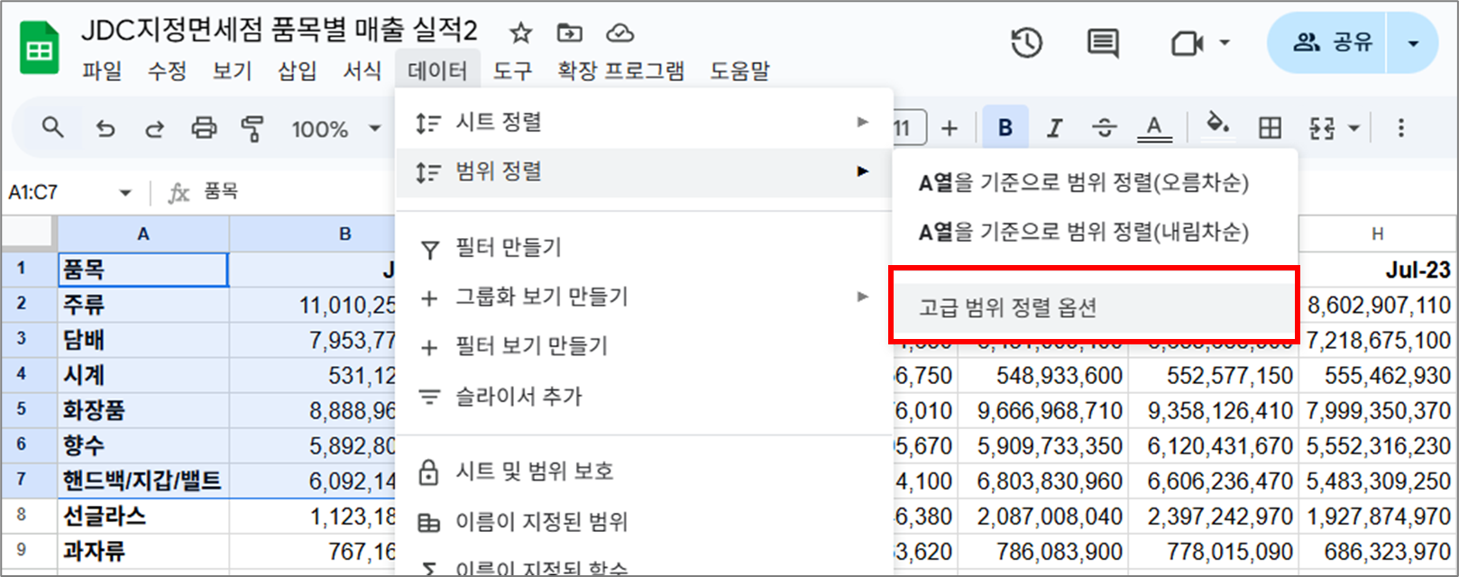 구글 스프레드시트 상단 메뉴 "데이터" 완벽 정리