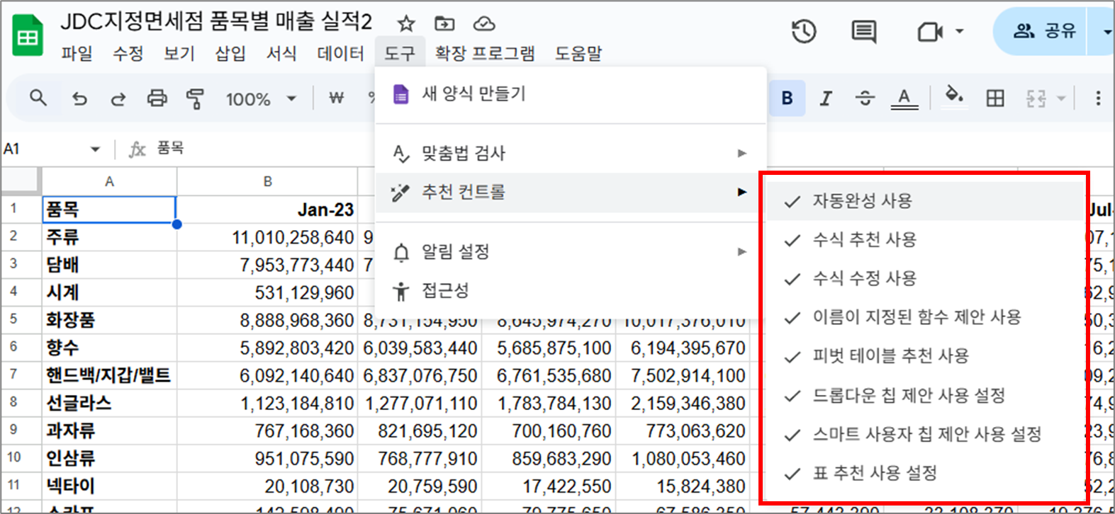 구글 스프레드시트 상단 메뉴 "도구(equipment)" 완벽 정리