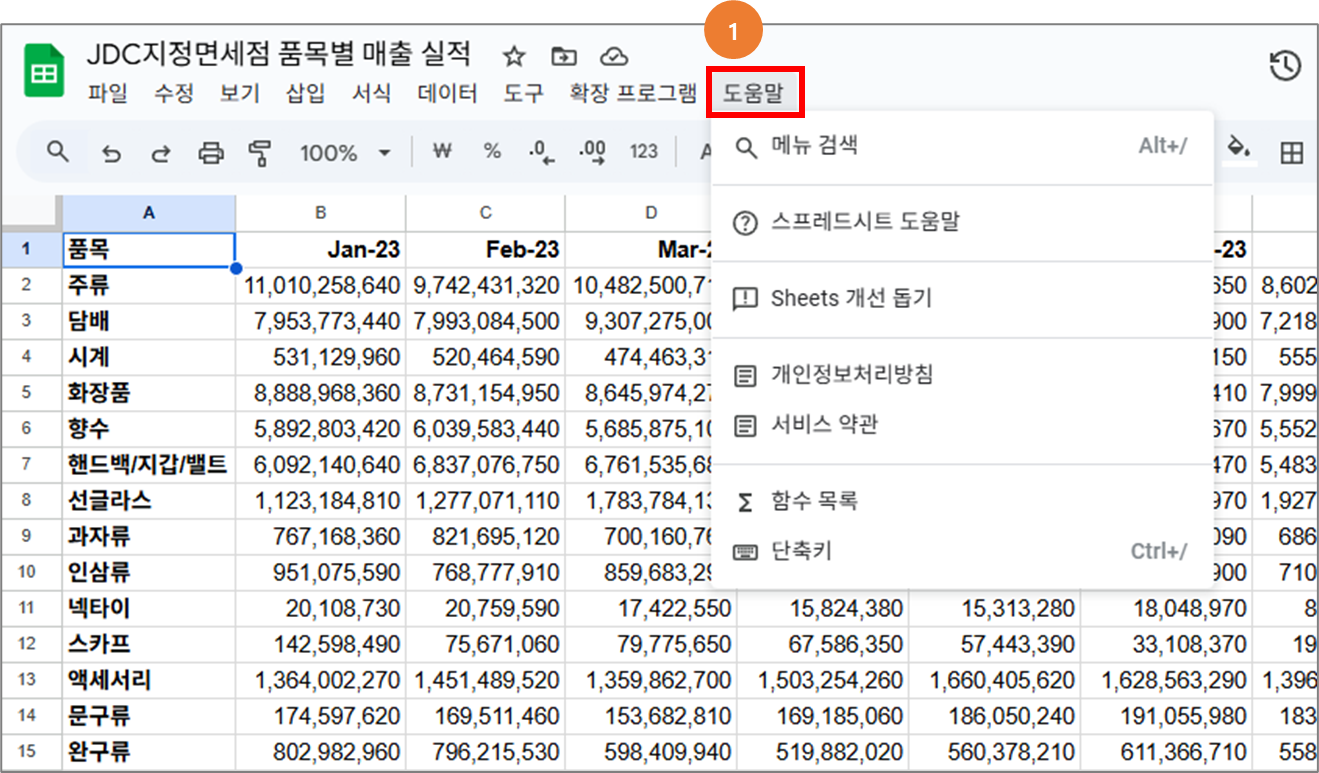 구글 스프레드시트 상단 메뉴 "도움말" 완벽 정리