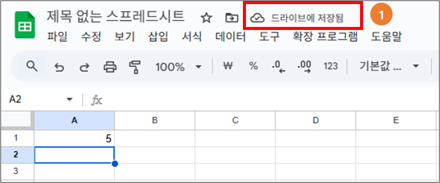 1-1 처음 구글 스프레드시트를 시작하면 "저장"된 버튼은 없습니다.
