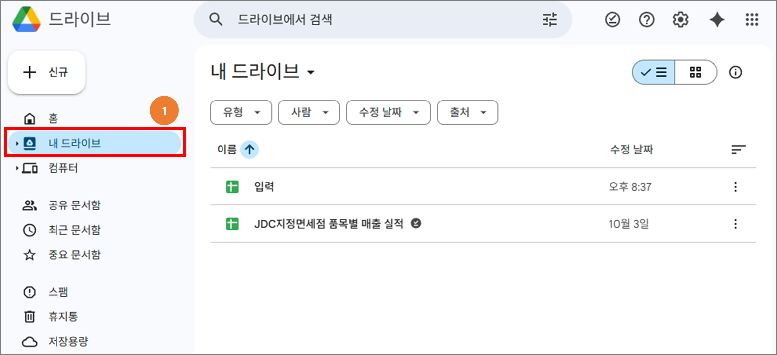 2. 구글 스프레드시트의 저장 위치는 ‘구글 드라이브’