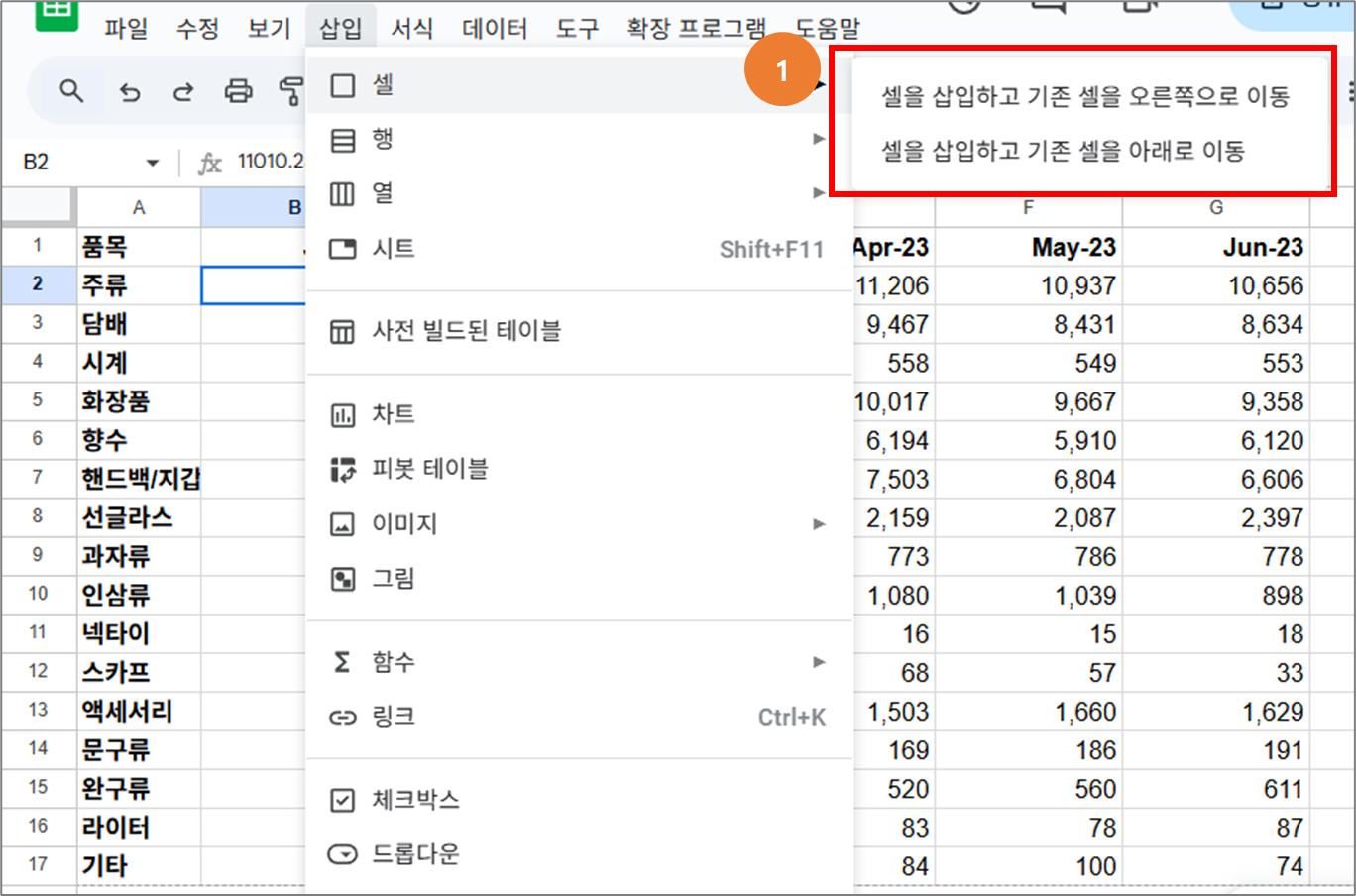 1. 구글 스프레드시트 셀 삽입하는 방법