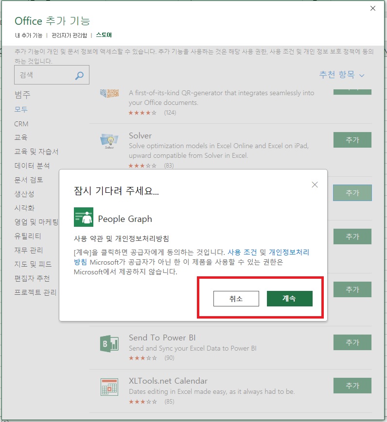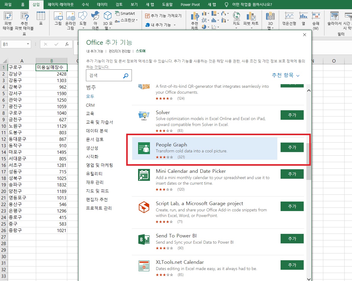 2. 추가 기능 가져오기로 들어가서 "People Graph" 추가를 클릭해주세요