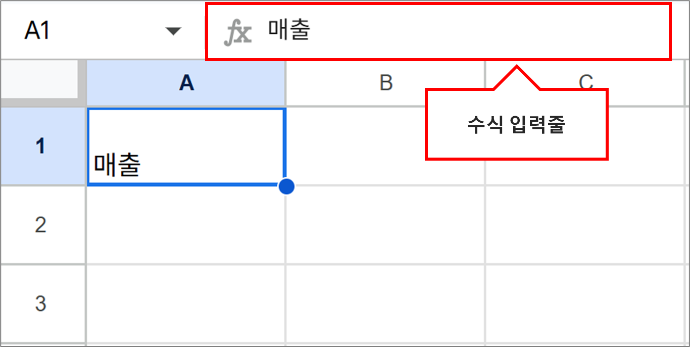 그리고 "수식 입력줄"에도 "매출"이 입력되어 있습니다.