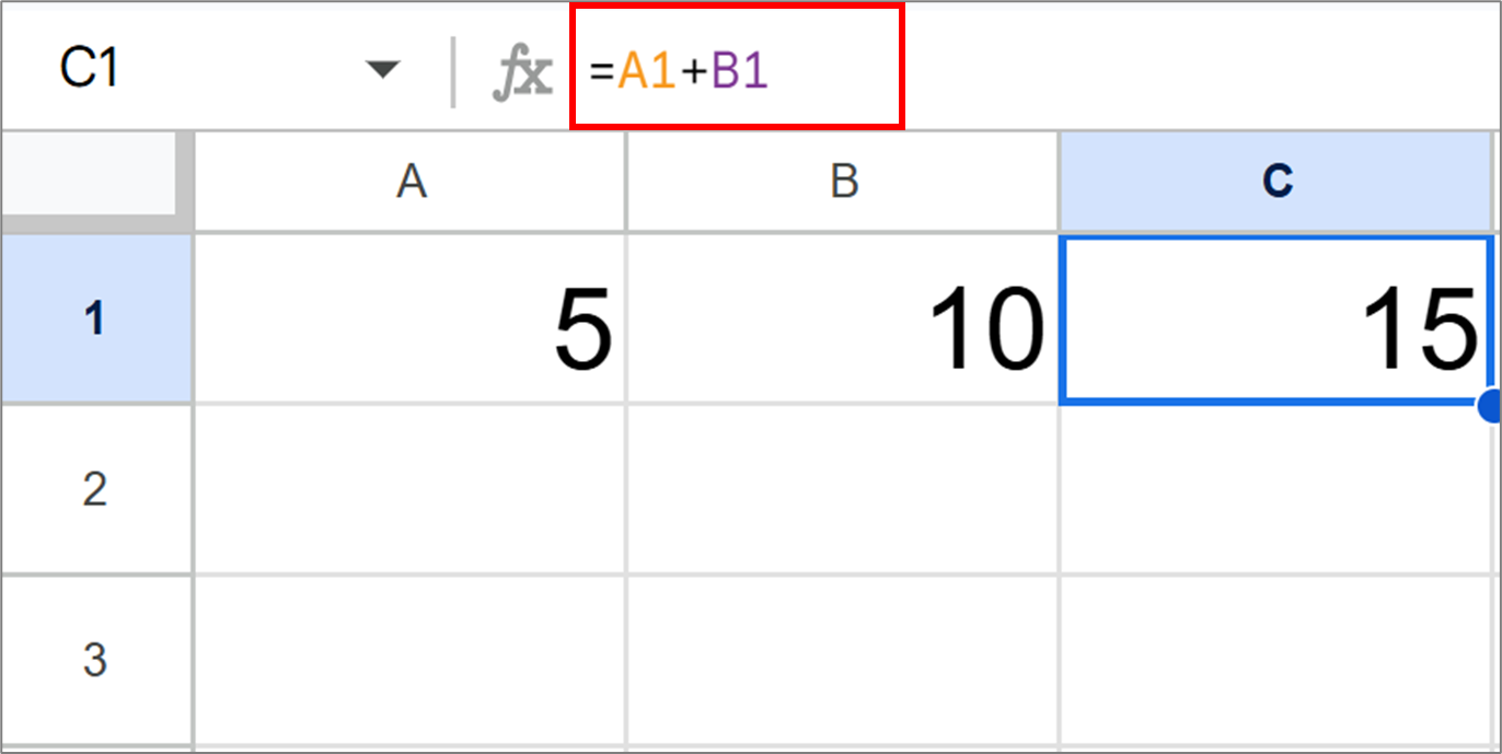 예: =A1 + B1 → A1 셀과 B1 셀의 값을 더함