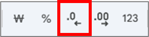 "맞춤 숫자 형식"으로 선택 / 단축키를 활용한 소수점 감소