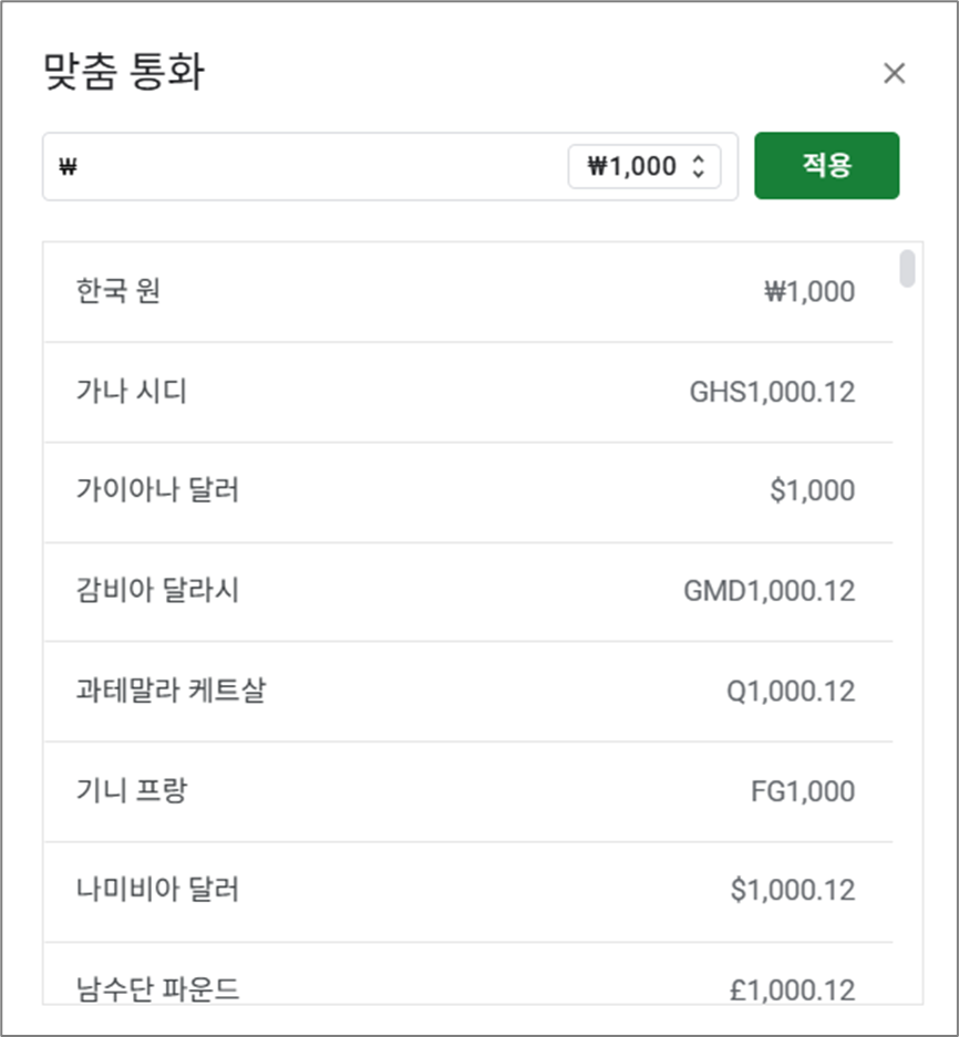 - 설명: 원하는 통화 단위를 직접 지정할 수 있는 형식입니다.