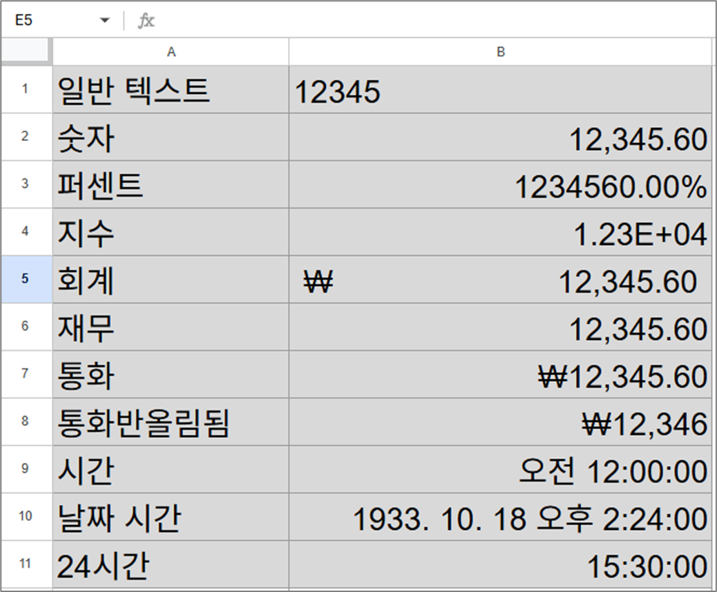 구글 스프레드시트의 셀 표시 형식