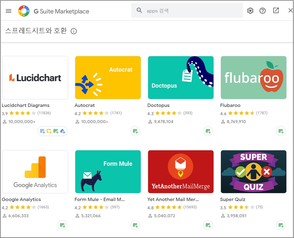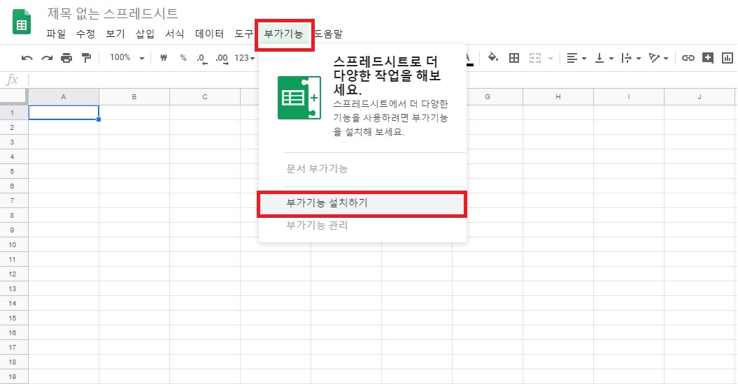 2. 구글 스프레트 시트 부가 기능을 설치가 필요합니다.