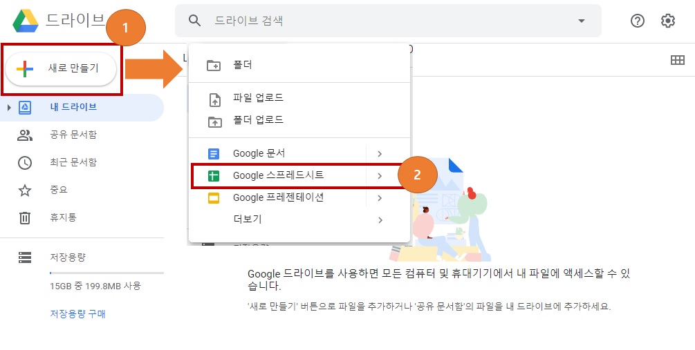 1. 구글 스프레드 시트를 실행합니다.
