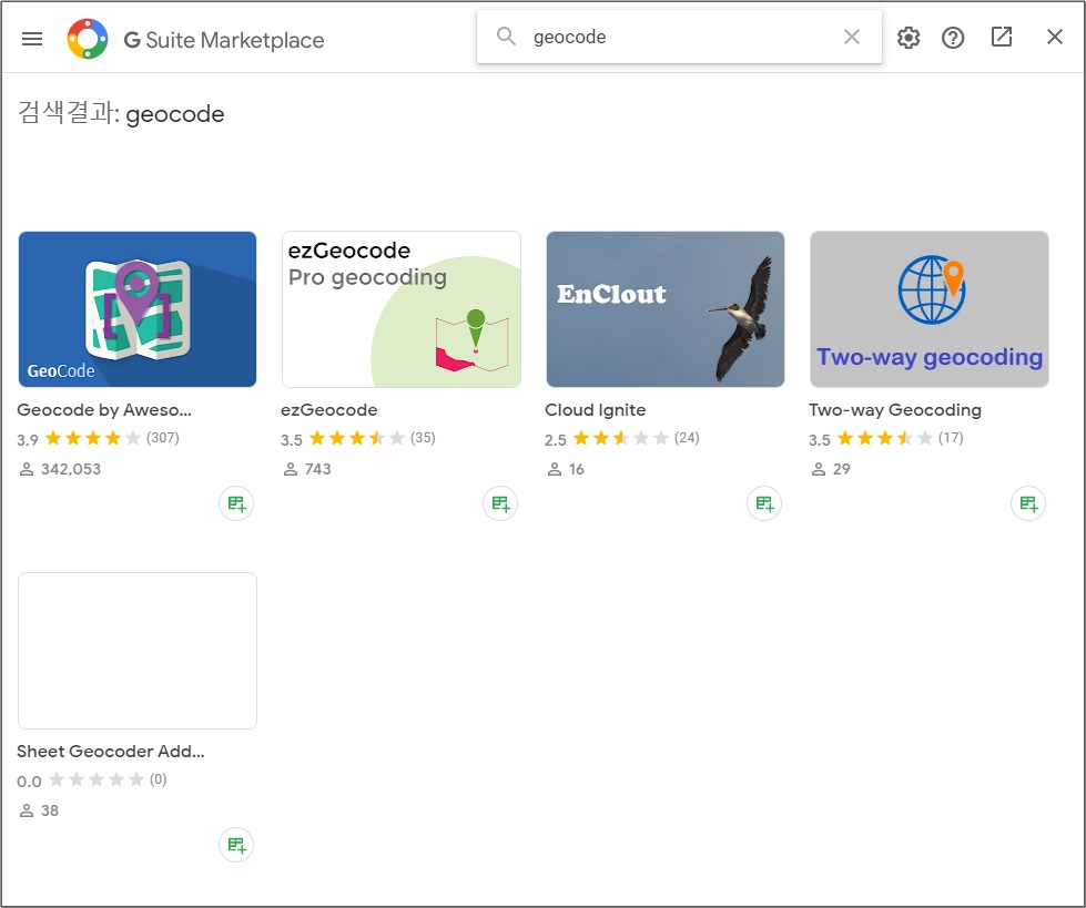 그리고 부가 기능에 들어가면 처음에 없던 "Geocode by Awesome Table"이 생겨있습니다.