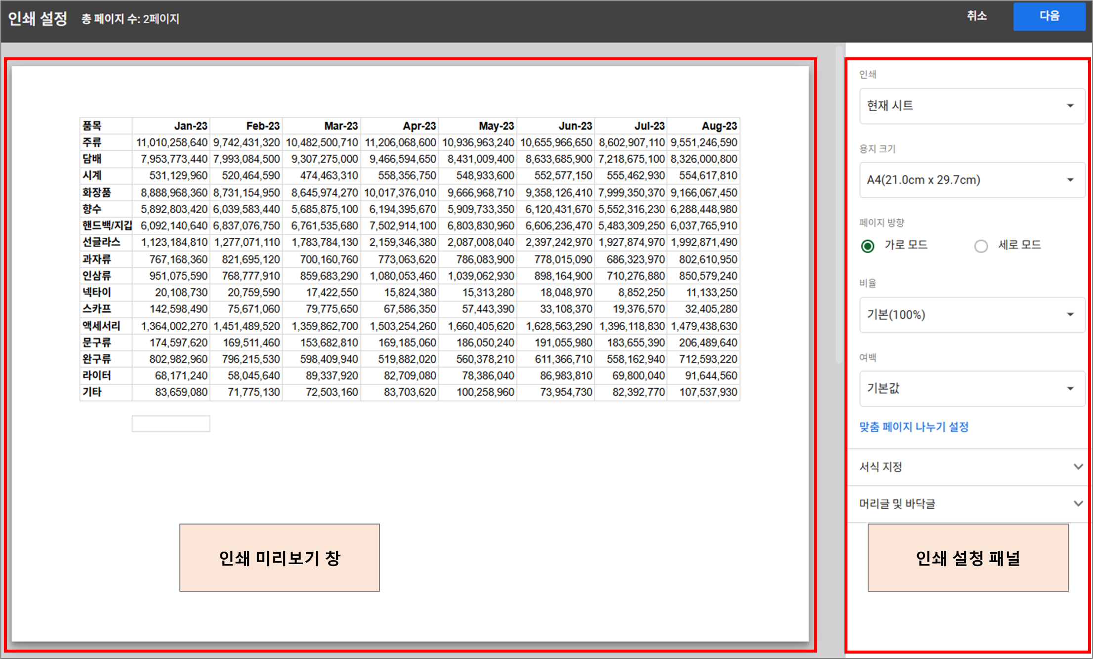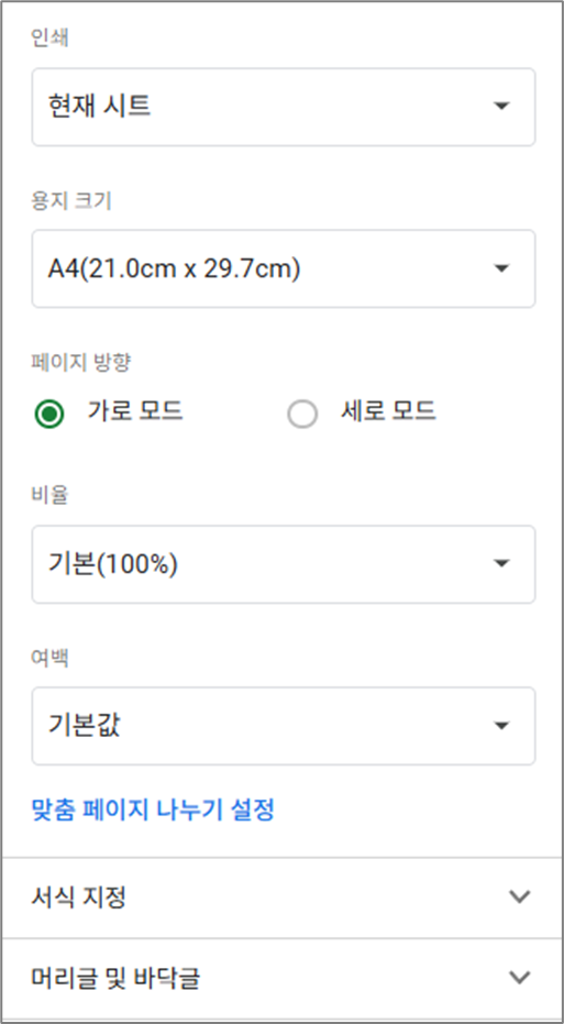구글 스프레드시트 인쇄 방법은?