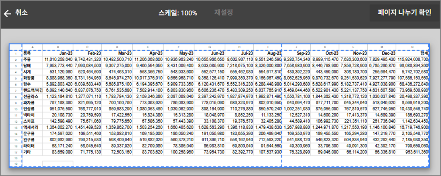 스프레드시트 문서를 보다 깔끔하게 인쇄하고, 실무에서 바로 활용하실 수 있는 정보를 자세히 설명드릴 예정이오니 도움이 되시길 바랍니다.