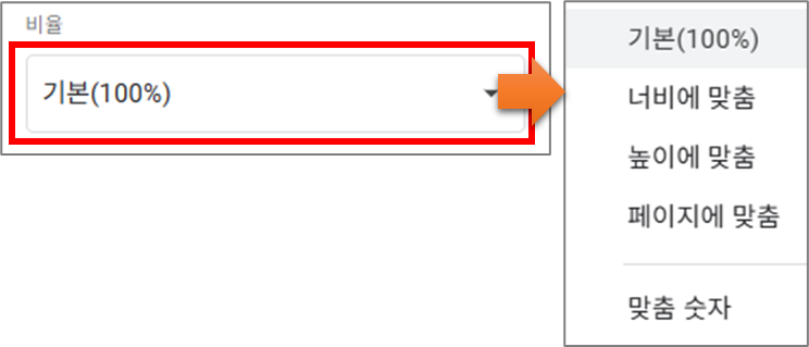 | 기본(100%) | 화면과 같은 비율 |