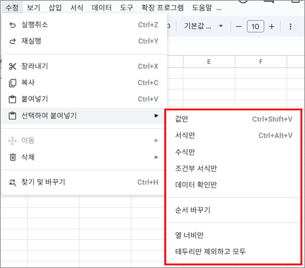 구글 스프레드시트의 수정메뉴 총정리 2탄으로 "선택하여붙여넣기"에 대해서 완벽정리 하겠습니다.
