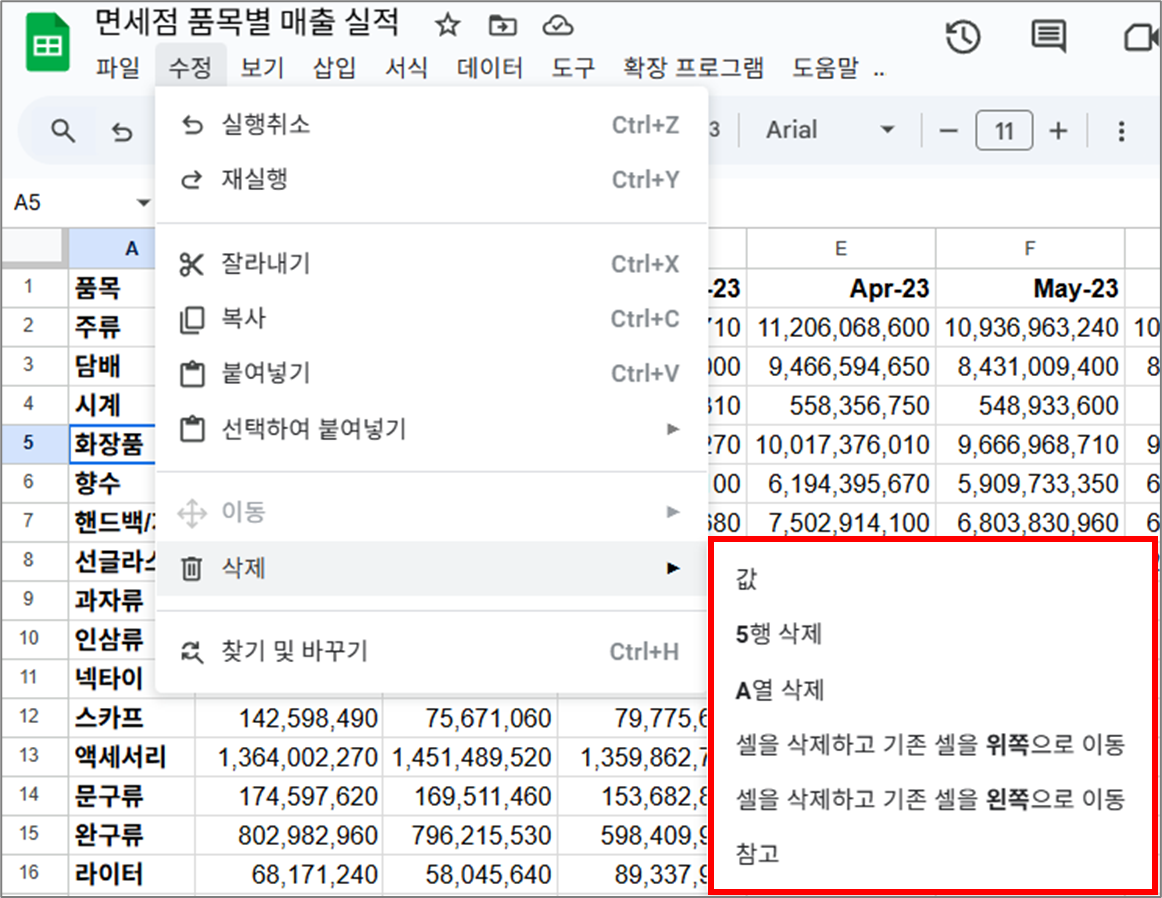 구글 스프레드시트 "수정" 메뉴 핵심 기능 총정리 3탄