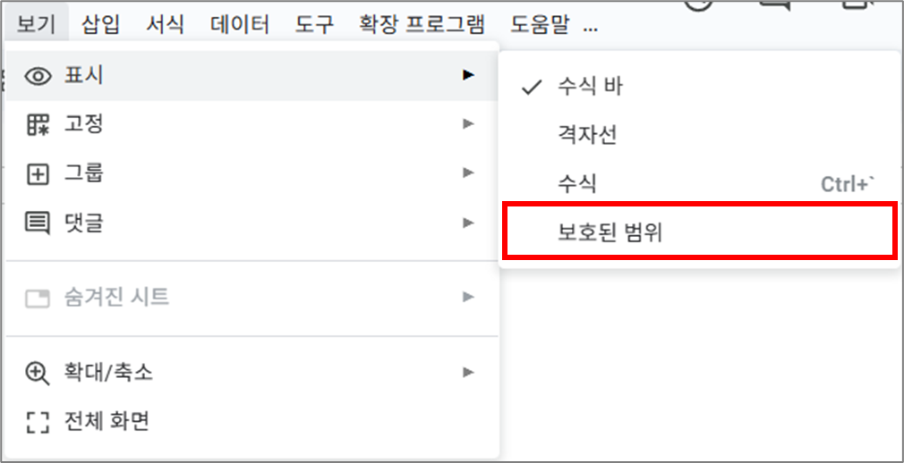 - 상단 메뉴 보기 > 표시 > 보호된 범위 체크