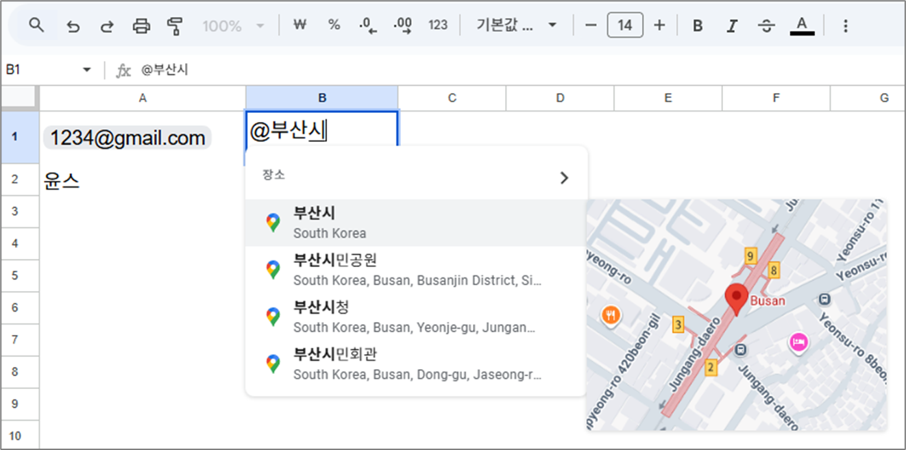 - 셀을 선택 → '@' 기호를 입력하고 원하는 단어를 넣음