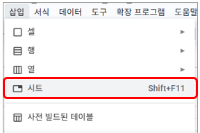 1) 시트를 추가 합니다. [ 삽입 -> 시트 ]